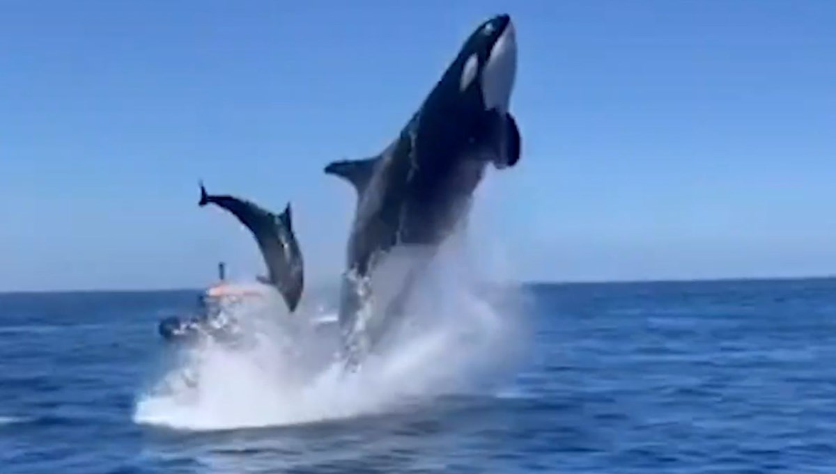 Meksika açıklarında katil balinanın yunus avını izleyen turistler sıra dışı bir manzara ile karşı karşıya kaldı. Sudan bir anda fırlayan tonlarca ağırlıktaki katil balina metrelerce havaya sıçradı. Dev cüssesine rağmen adeta havada asılı kalan katil balina geniş bir alana su sıçratarak yeniden okyanusa düştü. Katil balinaların av sırasında sudan dışarıya sıçradıkları ve bu esnada yunuslara çarparak sersemlettikleri biliniyor.