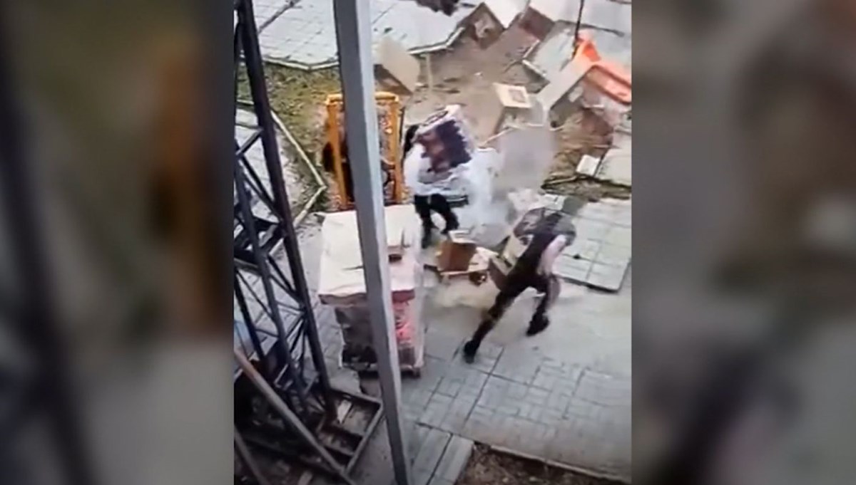 Depoya içecek kolilerini taşıyan işçilerin üstüne şişe yağdı. Üst kattaki işçilerden biri, yük asansöründeki kolilerden birini alınca denge bozuldu ve kutularca içecek aşağıdaki üç işçinin üzerine düştü. İşçiler kaçmayı başarırken şişeler yer düştüğü gibi patladı.
